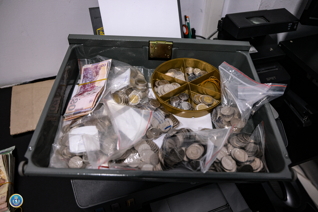 საგამოძიებო მოქმედებების პროცესში ნაღდი ფულის სახით ამოღებულია 246 975 აშშ დოლარი, 103 210 ლარი, 1 705 ევრო და სხვადასხვა სახის უცხოური ვალუტა.